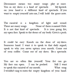 In a poem about memory, I am seeking something new, unplanned, possible. The collection that includes this poem started coming into being around the time I became a mother. I was experiencing, each day, how in moments of frightening, fundamental change I felt somehow in the presence of stuff from long ago, experiences I thought were lost—faced with them, now—and in this proximity to the past there was potential, like when you first meet someone you love but have not yet spoken a word.